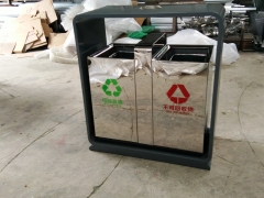 【表面处理】垃圾桶本身经喷砂处理去油去锈后,钢板表面抗紫外线丙稀酸油漆多层喷涂。