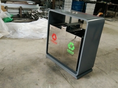 【表面处理】垃圾桶本身经喷砂处理去油去锈后,钢板表面抗紫外线丙稀酸油漆多层喷涂。