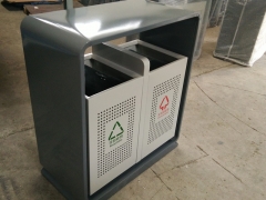 【表面处理】垃圾桶本身经喷砂处理去油去锈后,钢板表面抗紫外线丙稀酸油漆多层喷涂。