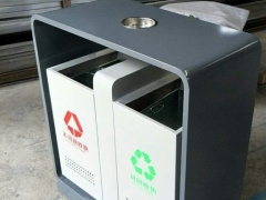 【表面处理】垃圾桶本身经喷砂处理去油去锈后,钢板表面抗紫外线丙稀酸油漆多层喷涂。