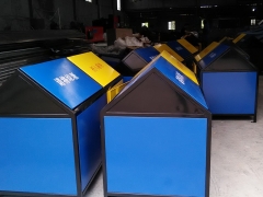 【表面处理】垃圾桶本身经喷砂处理去油去锈后,钢板表面抗紫外线丙稀酸油漆多层喷涂。