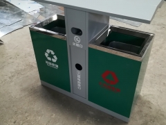 【表面处理】垃圾桶本身经喷砂处理去油去锈后,钢板表面抗紫外线丙稀酸油漆多层喷涂。