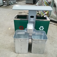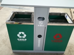 【表面处理】垃圾桶本身经喷砂处理去油去锈后,钢板表面抗紫外线丙稀酸油漆多层喷涂。