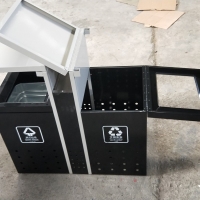 【表面处理】垃圾桶本身经喷砂处理去油去锈后,钢板表面抗紫外线丙稀酸油漆多层喷涂。