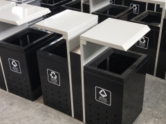 【表面处理】垃圾桶本身经喷砂处理去油去锈后,钢板表面抗紫外线丙稀酸油漆多层喷涂。