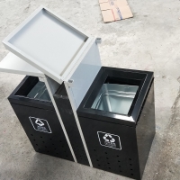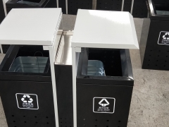 【表面处理】垃圾桶本身经喷砂处理去油去锈后,钢板表面抗紫外线丙稀酸油漆多层喷涂。