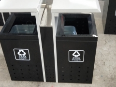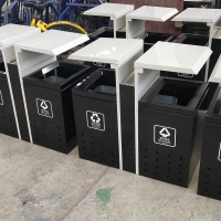 【表面处理】垃圾桶本身经喷砂处理去油去锈后,钢板表面抗紫外线丙稀酸油漆多层喷涂。