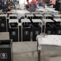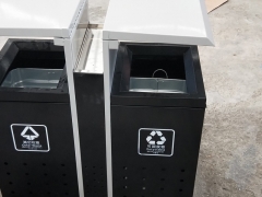 【表面处理】垃圾桶本身经喷砂处理去油去锈后,钢板表面抗紫外线丙稀酸油漆多层喷涂。