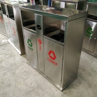 【产品配件】:户外分类垃圾桶配镀锌板内胆2个,镀锌废旧电池回收盒,灭烟盒各一个,膨胀螺丝4个,钥匙一把。