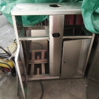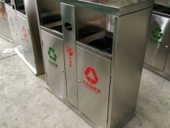 【产品配件】:户外分类垃圾桶配镀锌板内胆2个,镀锌废旧电池回收盒,灭烟盒各一个,膨胀螺丝4个,钥匙一把。